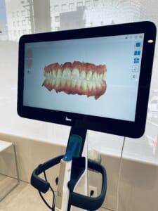 この機械でスキャンすることでご自身の歯並びをモニター上で見ながらお話しができるので、とてもわかりやすく矯正治療のご相談ができるかと思います。