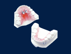 これらの装置は全て取り外しが可能ですので、ヘッドギアと同様に主に就寝時に使用していただき、下顎を通常よりも前方に位置させることで下顎の成長を促進していきます。