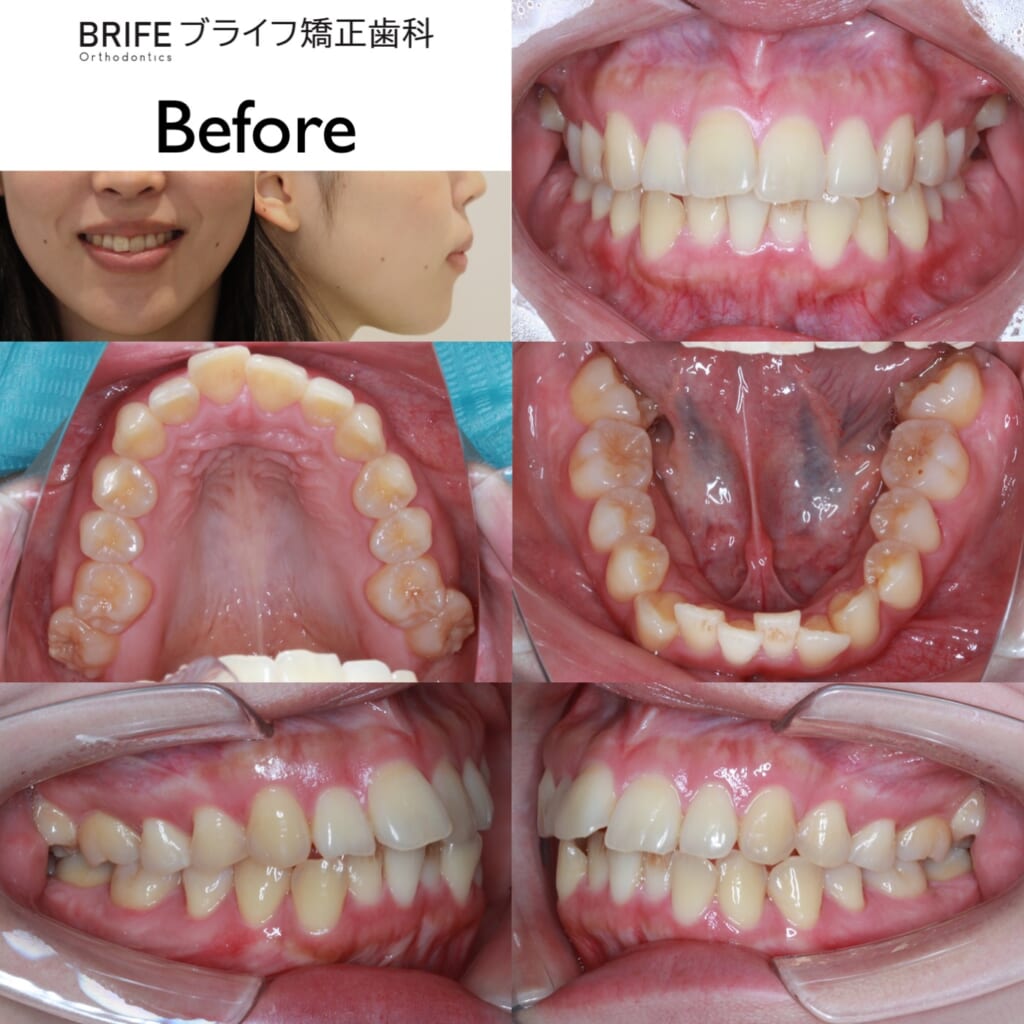 初診時の状態では、上下顎の前歯がガタガタしており、やや出っ歯の傾向がありました。