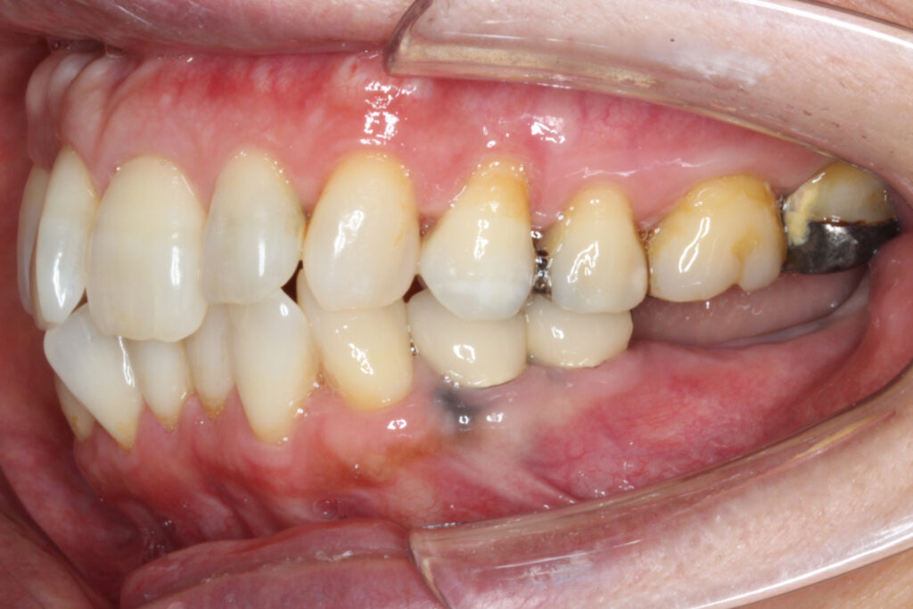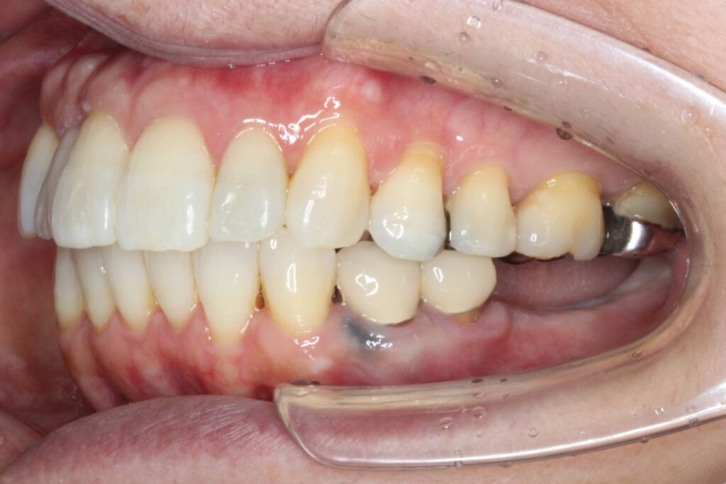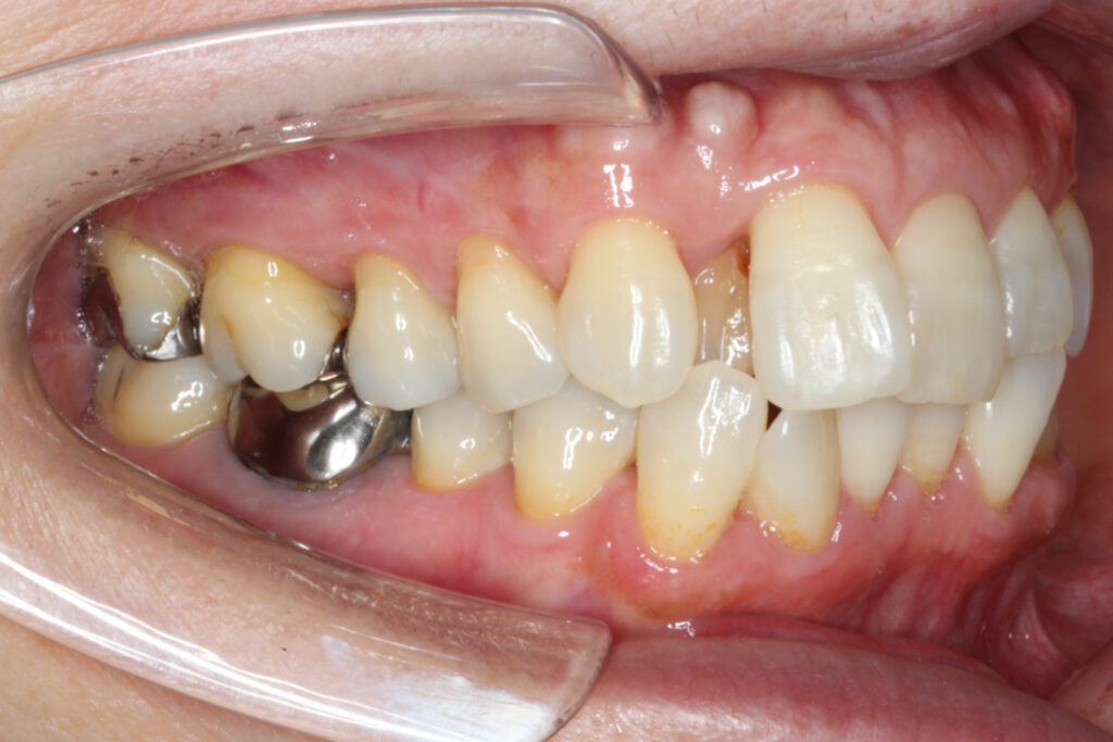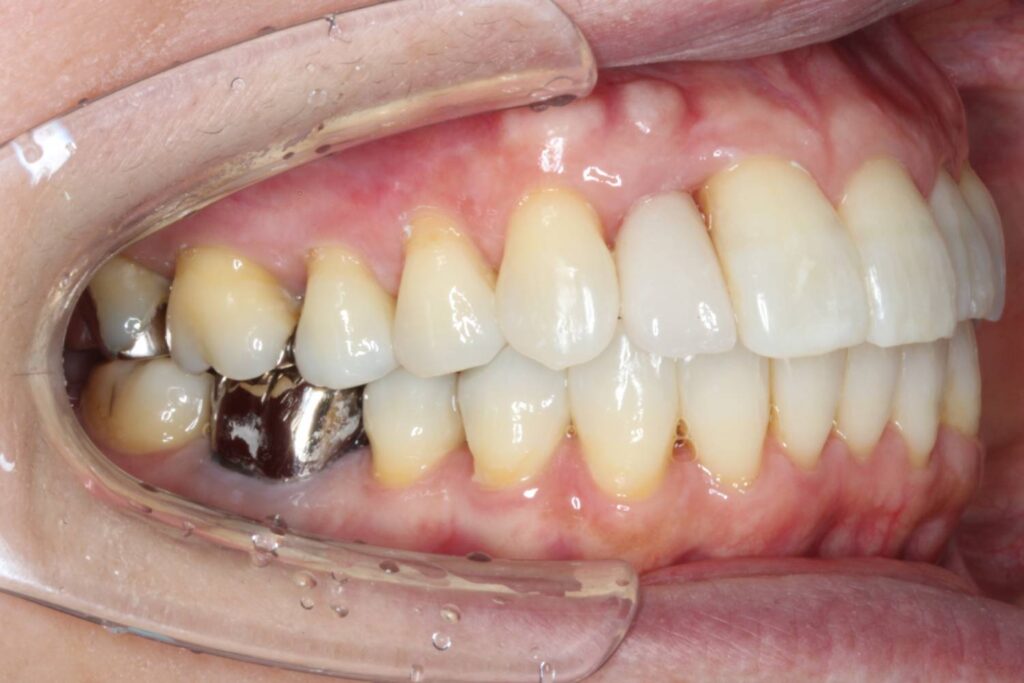 左上の奥歯を後方へ移動させたことにより、上下の歯並びの中心も一致しました。
