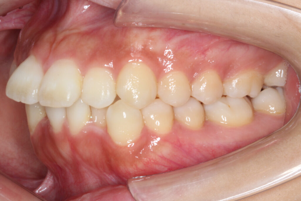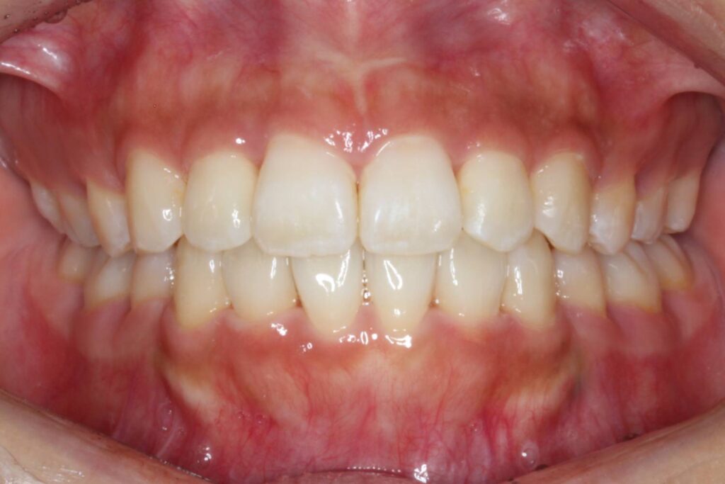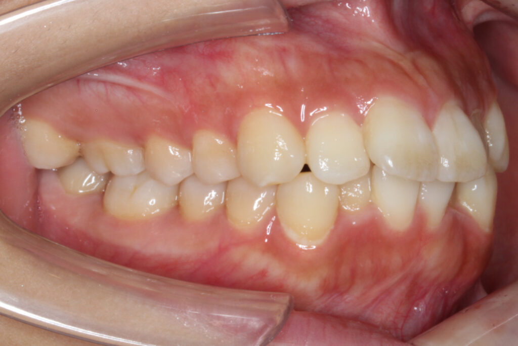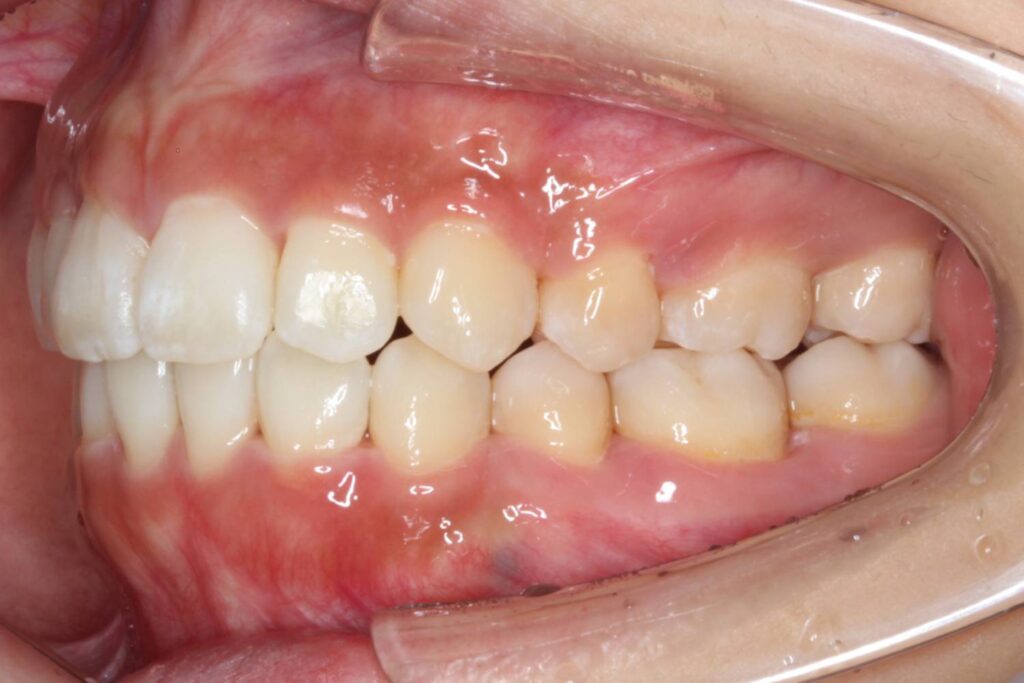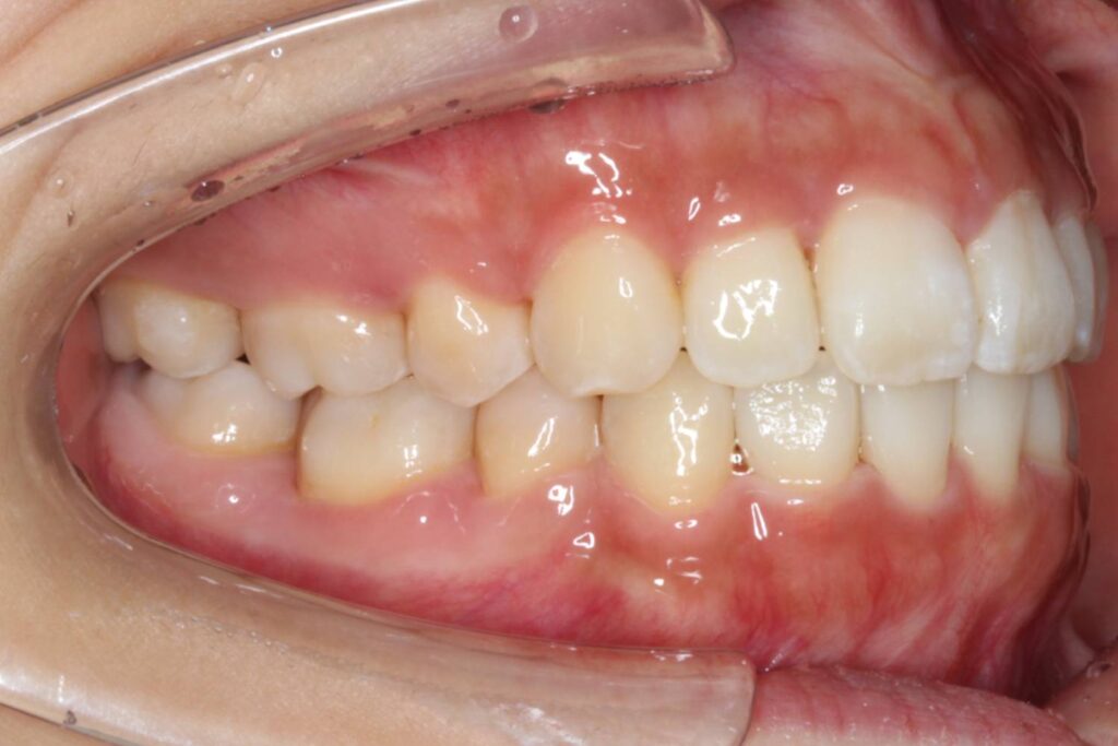 前歯が綺麗に並び、かつ後方へ引っ込んだことで口元の印象が改善しています。