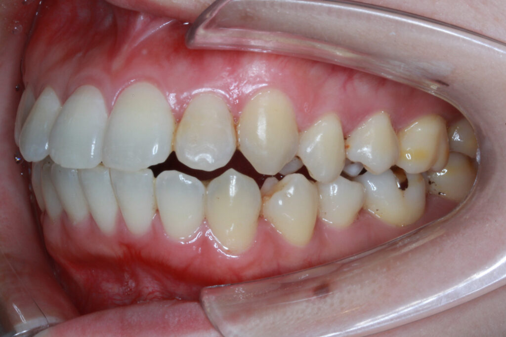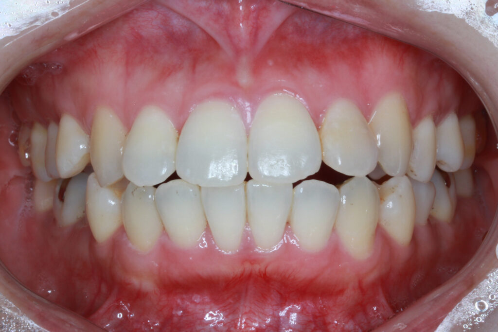 無理に前歯を並べているためか、噛み合っていない部分もある状態です。