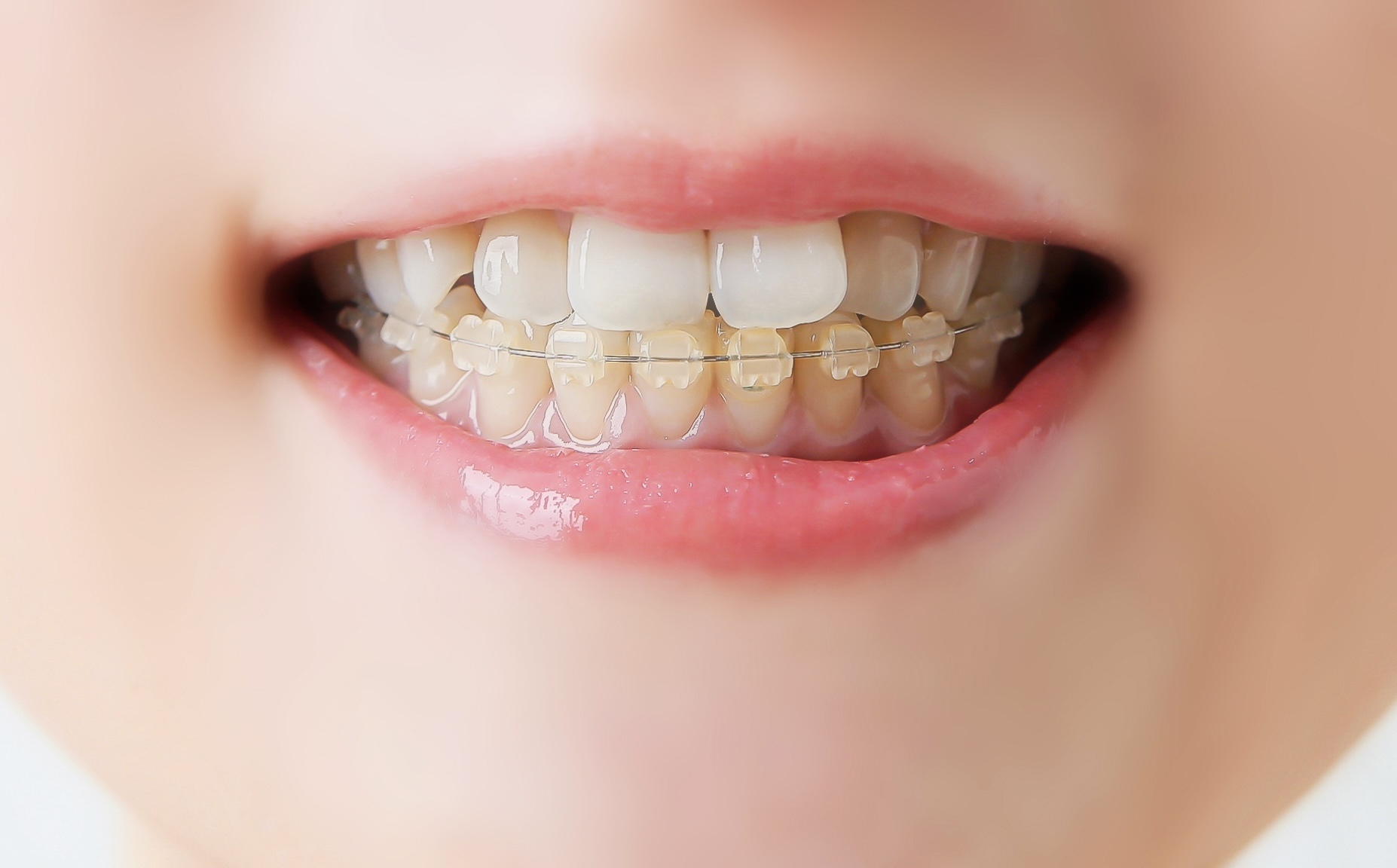 銀色の装置ではなく、白や透明のブラケット(歯の表面につける小さな装置)と白いワイヤー(審美ブラケットを用いたマルチブラケット装置)を使う矯正方法です。